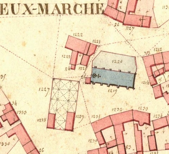 Feuille D4 du cadastre ancien de la commune de Le Vieux-Marché, 1835 : le bourgImmatriculation