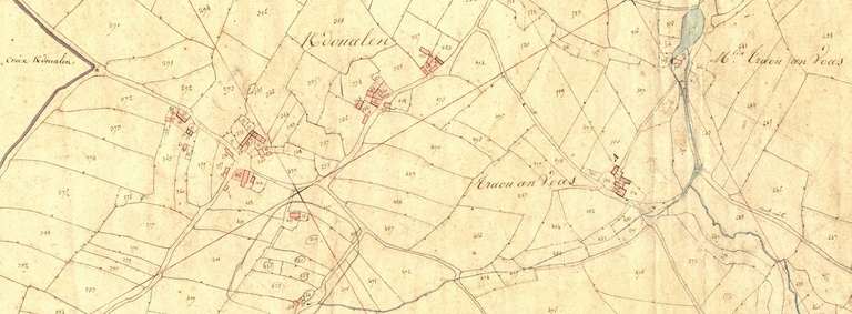 Extrait de la feuille B1 du cadastre ancien de la commune de Le Vieux-Marché, 1835 : KerdoualenImmatriculation