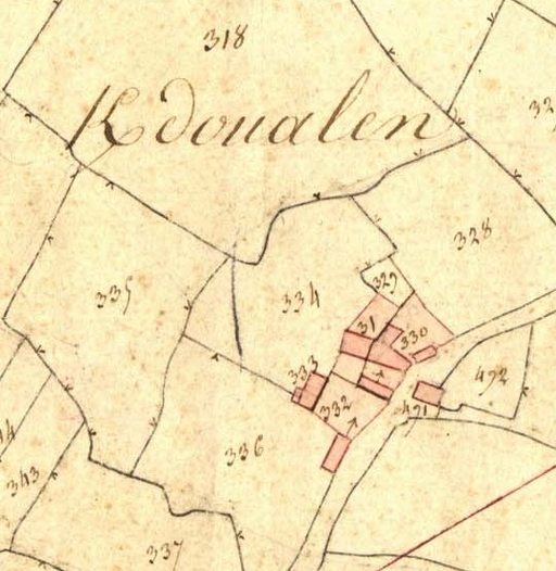 Extrait de la feuille B1 du cadastre ancien de la commune de Le Vieux-Marché, 1835 : KerdoualenImmatriculation