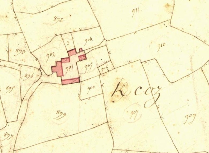 Extrait de la feuille F3 du cadastre ancien de la commune de Le Vieux-Marché, 1835 : Kergoz [Kercoz]Immatriculation