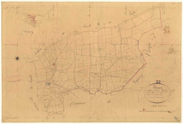 Feuille B1 du cadastre ancien de la commune de Plougras, 1834Immatriculation