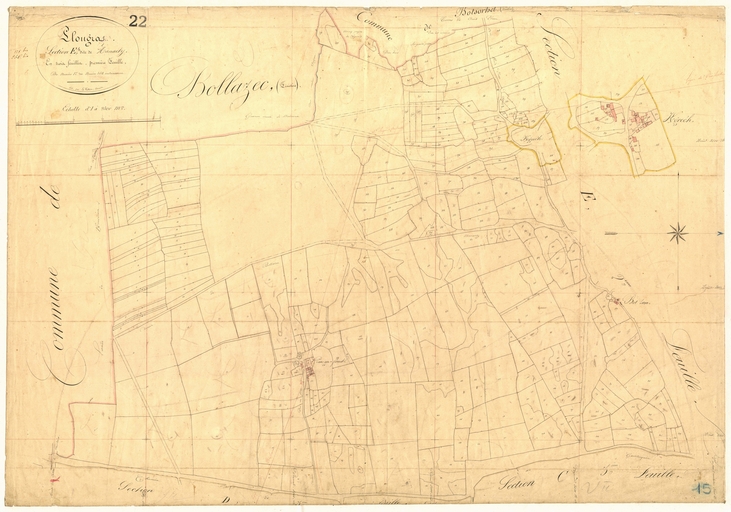 Feuille E1 du cadastre ancien de la commune de Plougras, 1834Immatriculation