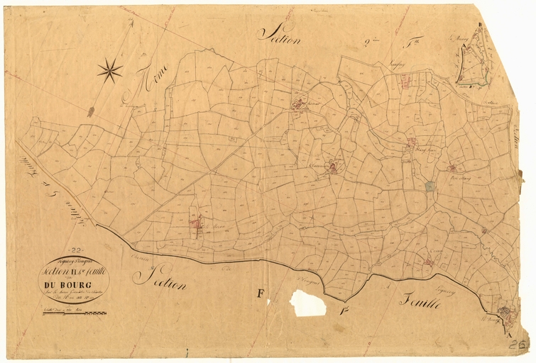 Feuille H4 du cadastre ancien de la commune de Loguivy-Plougras, 1834 : le bourgImmatriculation