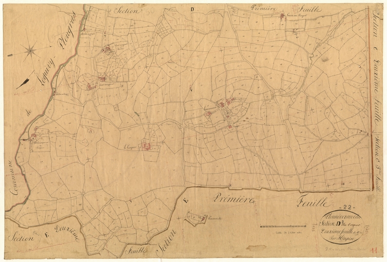 Feuille D2 du cadastre ancien de la commune de Plounévez-Moëdec, 1834Immatriculation