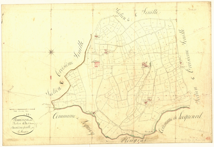 Feuille G2 du cadastre ancien de la commune de Plounévez-Moëdec, 1834Immatriculation