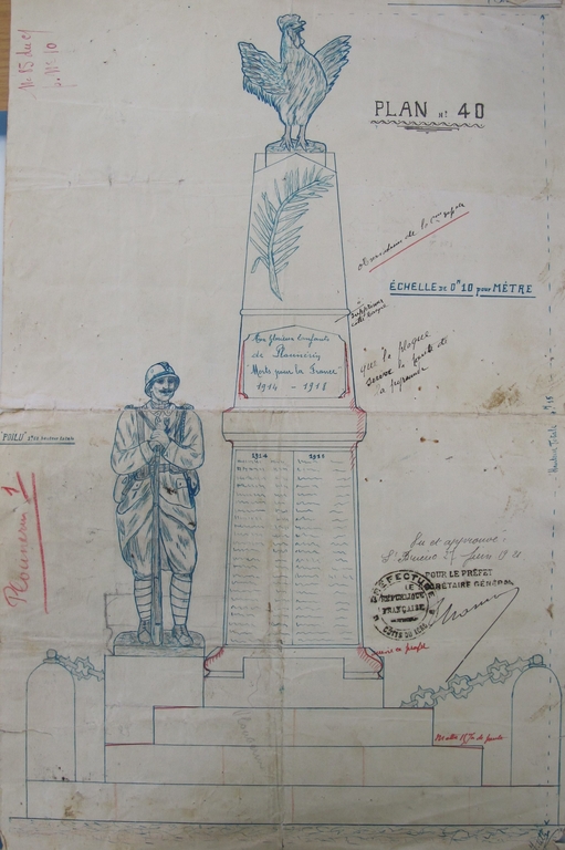 Plounérin, le bourg, rue de l'Eglise : élévation du monument aux morts, juin 1921Immatriculation