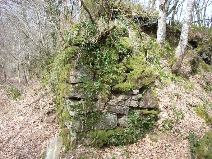 Plounérin, Bruillac : vestiges de l'enceinte fortifiée de l'ancien manoir, détail du mur remparéImmatriculation