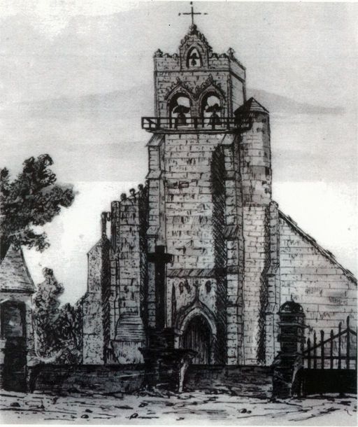 Plounévez-Moëdec, le bourg : église paroissiale Saint-Pierre, dessinImmatriculation