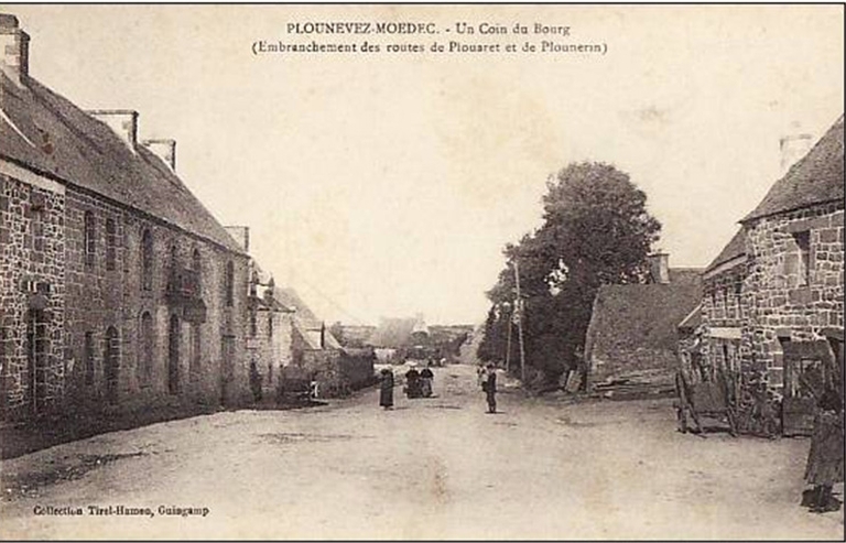 Plounévez-Moëdec, le bourg : embranchement des routes de Plouaret et Plounérin, vue générale, carte postale ancienneImmatriculation