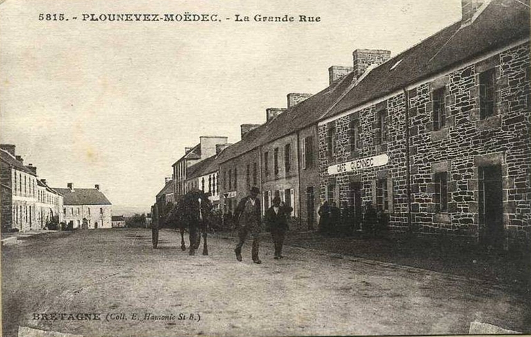 Plounévez-Moëdec, le bourg : la Grande Rue, vue générale, carte postale ancienneImmatriculation