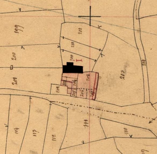 Extrait du cadastre ancien de la commune de Plounévez-Moëdec, 1834 : ferme de Kerderrien (en noir)Immatriculation