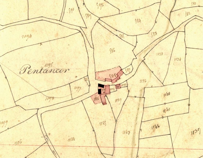 Extrait du cadastre ancien de la commune de Plounévez-Moëdec, 1834 : Pentencor (en noir)Immatriculation