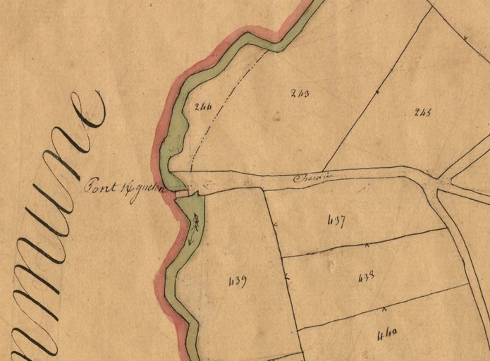 Extrait du cadastre ancien de la commune de Plounévez-Moëdec, 1834 : Pont Kerguélen [Kguelen]Immatriculation