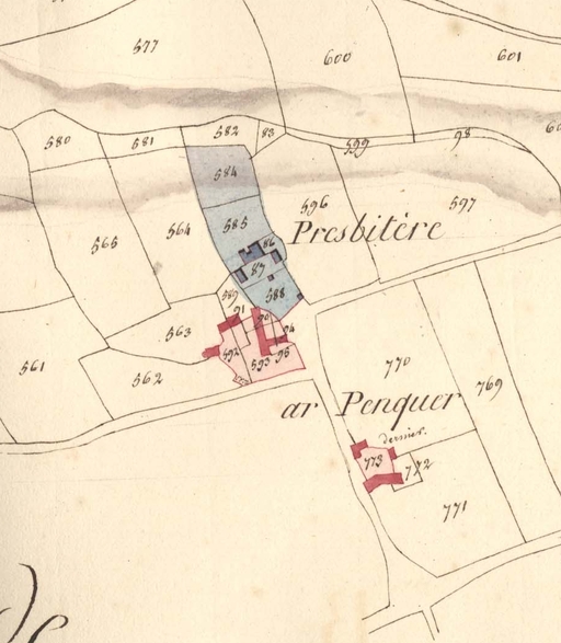 Extrait du cadastre ancien de la commune de Lanvellec, 1813 : le presbytère [Prebitère]Immatriculation