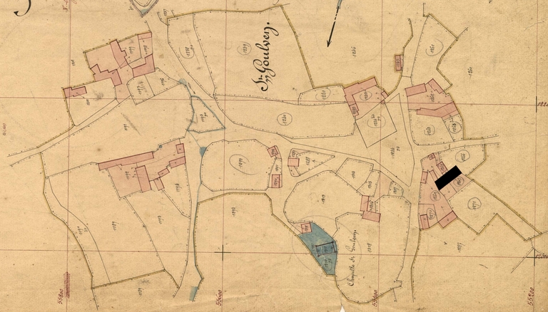 Extrait du cadastre ancien de la commune de Lanvellec, 1848 : Saint-Goulven, manoirImmatriculation