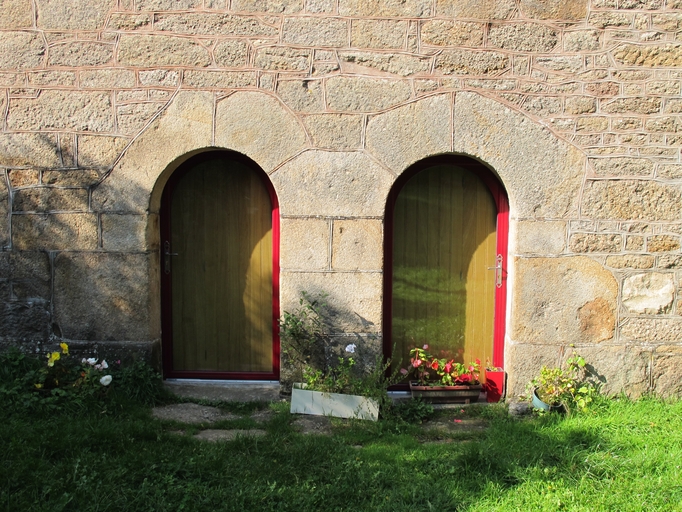 Lanvellec, Kergrec'h : ancienne métairie, élévation est, détail des portes géminées en plein cintreImmatriculation
