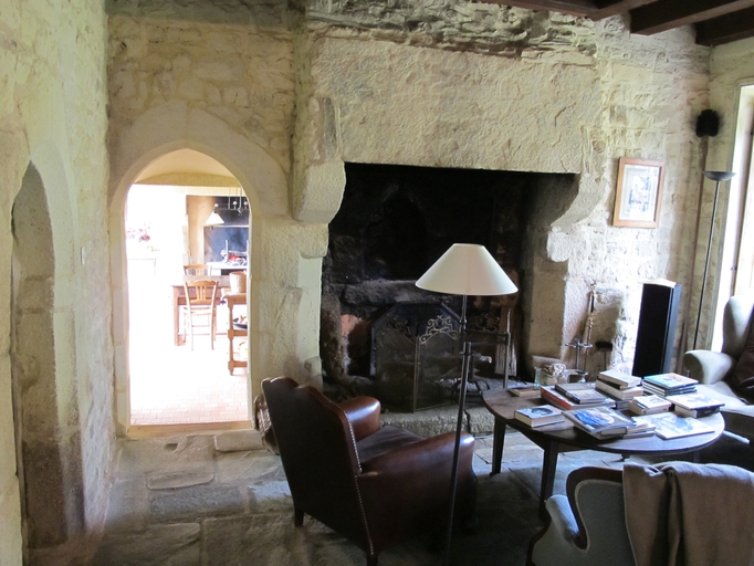 Lanvellec, le Presbytère : ancien presbytère, vue intérieure, cheminée (percement du pignon nord ex nihilo pour aménager une porte)Immatriculation