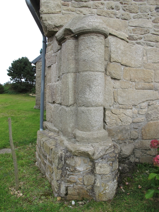 Lanvellec, Run ar Léjou : ferme, pignon ouest. Eléments anciens datables du 1er quart du 17e siècle : pilier de forme circulaireImmatriculation