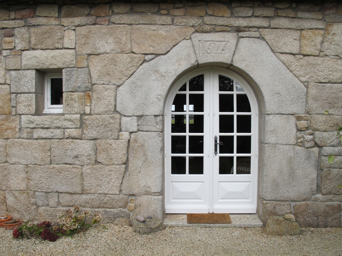 Lanvellec, Run ar Léjou : ferme, détail de la façade antérieure orientée sud, clé datée 1626Immatriculation