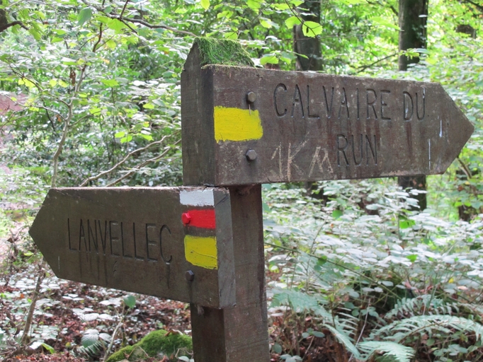 Lanvellec, Saint-Goulven, ouest : croix dite calvaire du Run, signalétique en placeImmatriculation