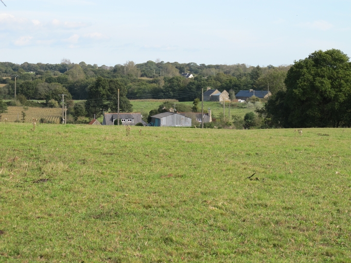 Lanvellec, Saint-Goulven, ouest : le hameau de Saint-Goulven depuis la croix dite calvaire du RunImmatriculation