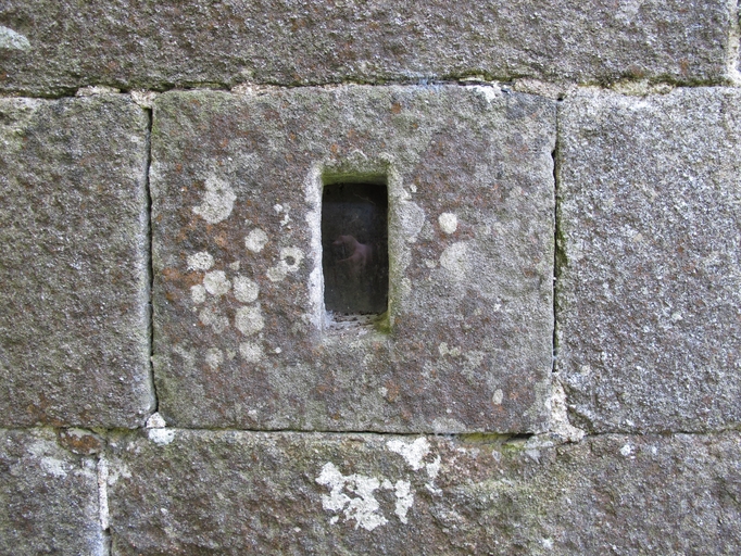 Lanvellec, Saint-Goulven : chapelle, élévation nord, petit jour permettant de voir l'intérieur de la chapelleImmatriculation