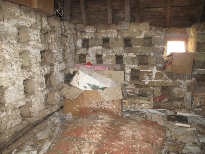 Lanvellec, Goaz Ru : manoir, vue intérieure, colombier aménagé au sommet de la tour d'escalierImmatriculation