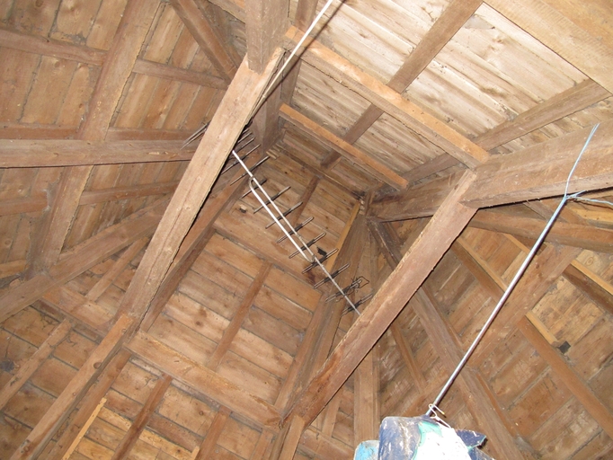 Lanvellec, Goaz Ru : manoir, vue intérieure, charpente de la tour d'escalierImmatriculation