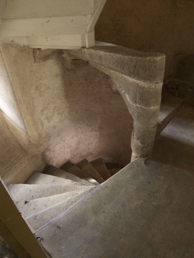 Escalier en vis, vue du palier du premier étageImmatriculation