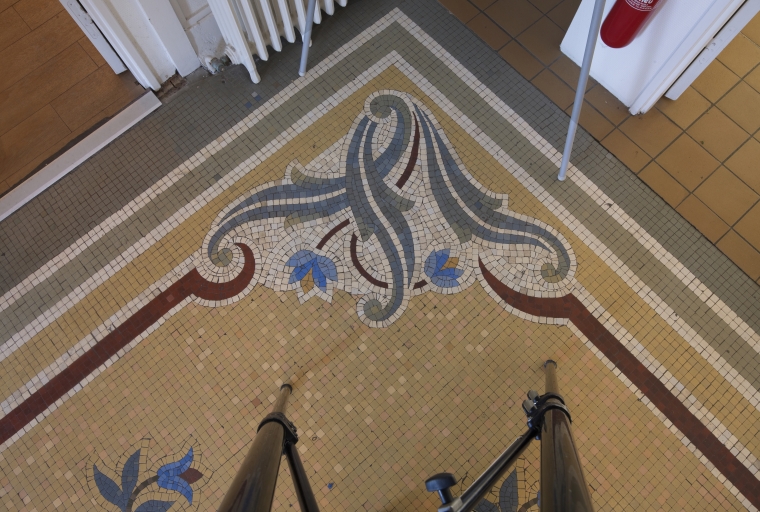 Hall d'entrée. Détail du revêtement de sol en mosaïqueImmatriculation