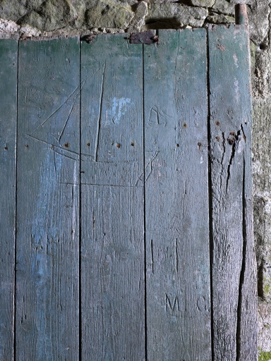 Kervéleyen, ferme, détail de graffiti sur la porte charretièreImmatriculation