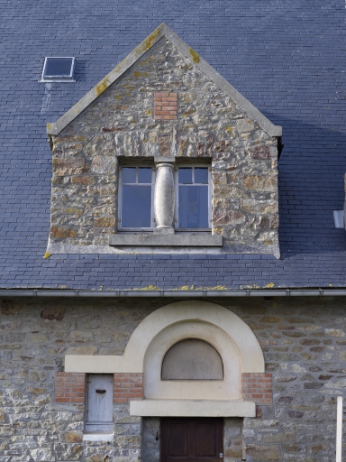 Façade nord, détail de la lucarne et de la porteImmatriculation