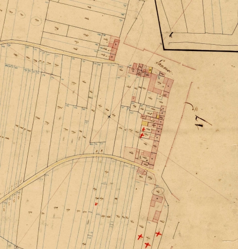 Cadastre de 1831, extrait, partie ouest du bourgImmatriculation