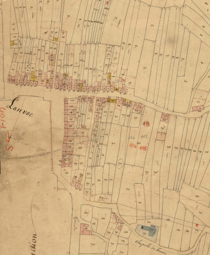Cadastre de 1831, extrait, partie est du bourgImmatriculation