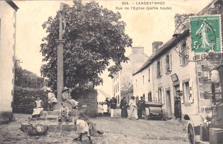 Carte postale. Landévennec. Rue de l'église.Immatriculation