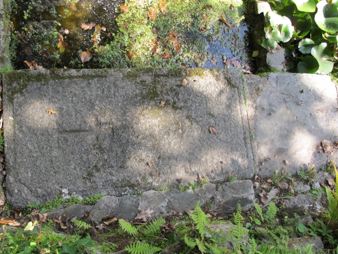 Route du Menez, lavoir, pierre tombale utilisée en remploiImmatriculation