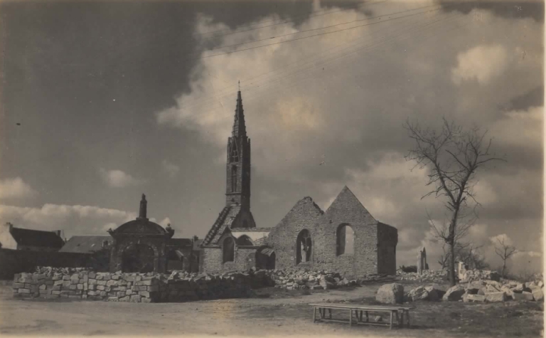 L'église après les bombardements (collection particulière Roger Merour)Immatriculation