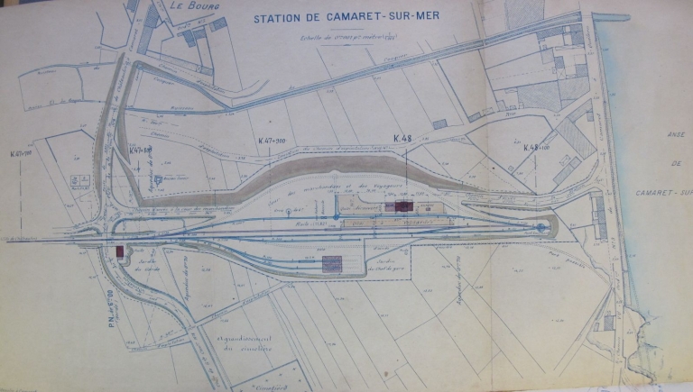 Plan de la station de Camaret avec indications des voies d'accès daté du 12 juin 1910, dressé par V. Adam (A.D Finistère).Immatriculation