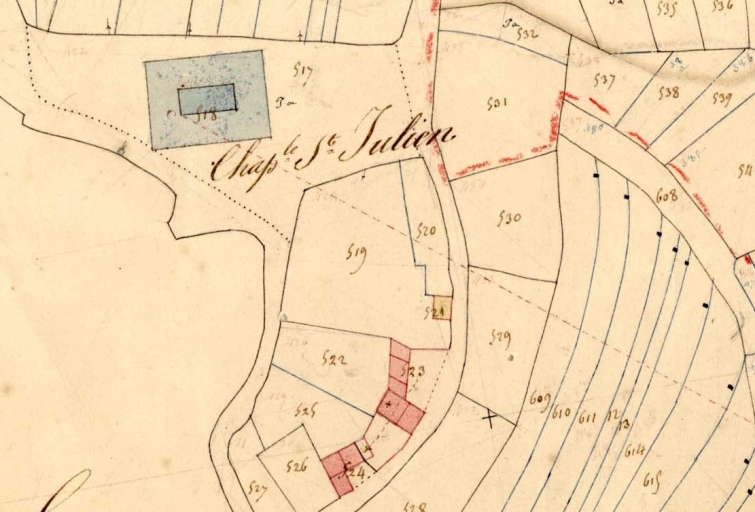 Extrait du plan cadastral de 1830 ( A.D. Finistère, 3 P 25).Immatriculation