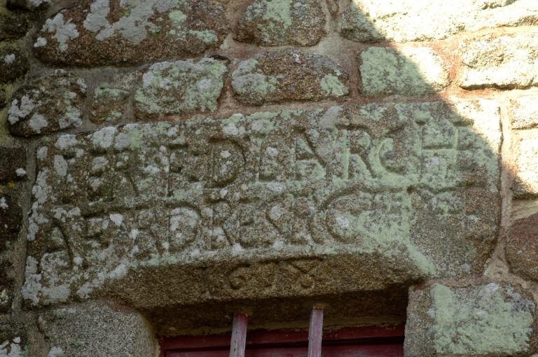 Détail du linteau sur la tour d'escalier.Immatriculation