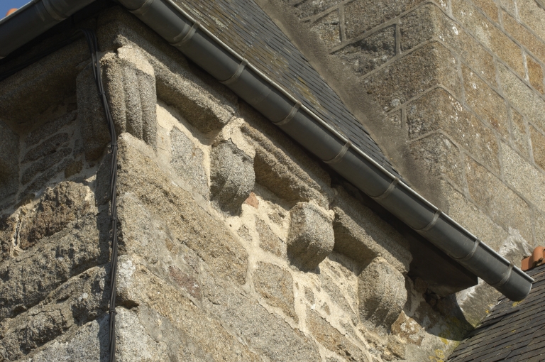 Détail de la corniche à modillons.Immatriculation