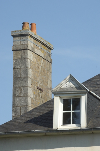 Détail d'une souche de cheminée.Immatriculation