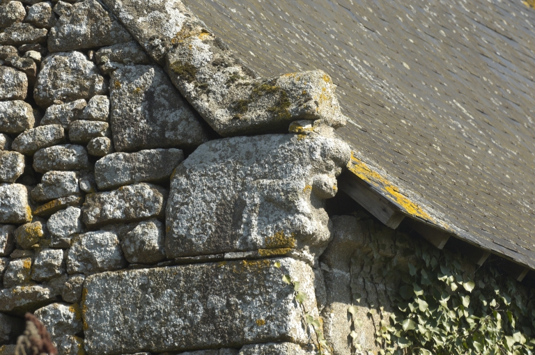 Détail de la chaîne d'angle sculptée.Immatriculation