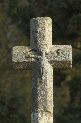 Saint-Hilaire, calvaire, détail de la croix.Immatriculation