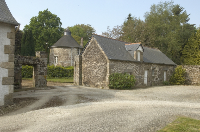 Vue de l'entrée de la cour et du pigeonnier.Immatriculation