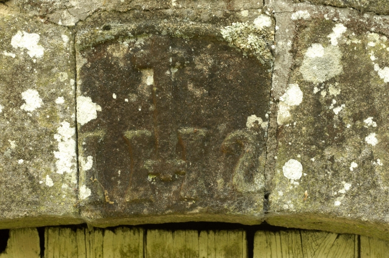 Inscription sur la porte nord de la chapelle.Immatriculation