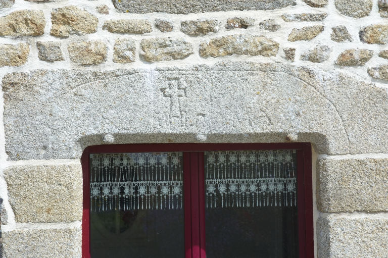 Linteau sculpté d'une croix et des monogrammes IHS et MAImmatriculation