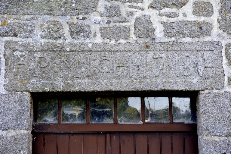 Maison du 18e siècle : détail du linteau de porte avec date (1718)Immatriculation