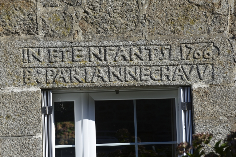 Maison du 18e siècle : détail du linteau avec date (1766)Immatriculation