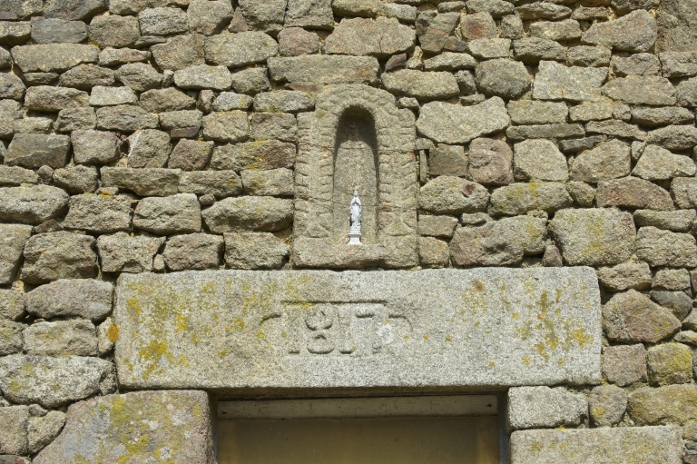 Ferme du Bois Vien : niche à statue et date sur un linteau (1817)Immatriculation